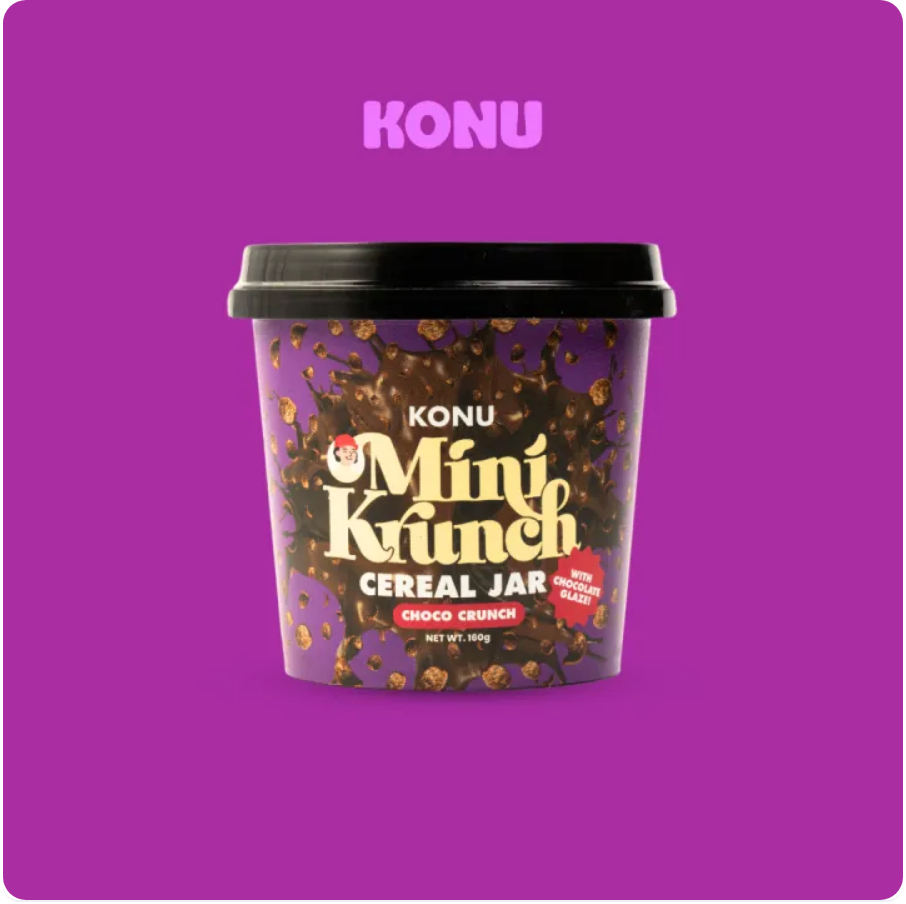 KONU Mini Krunch is a perfect blend of crunchy cereals with sweet chocolate coatings that will satisfy your cravings any time of day. Whether you need a quick breakfast or an afternoon pick-me-up snack, these mini cereals are convenient for all occasions.