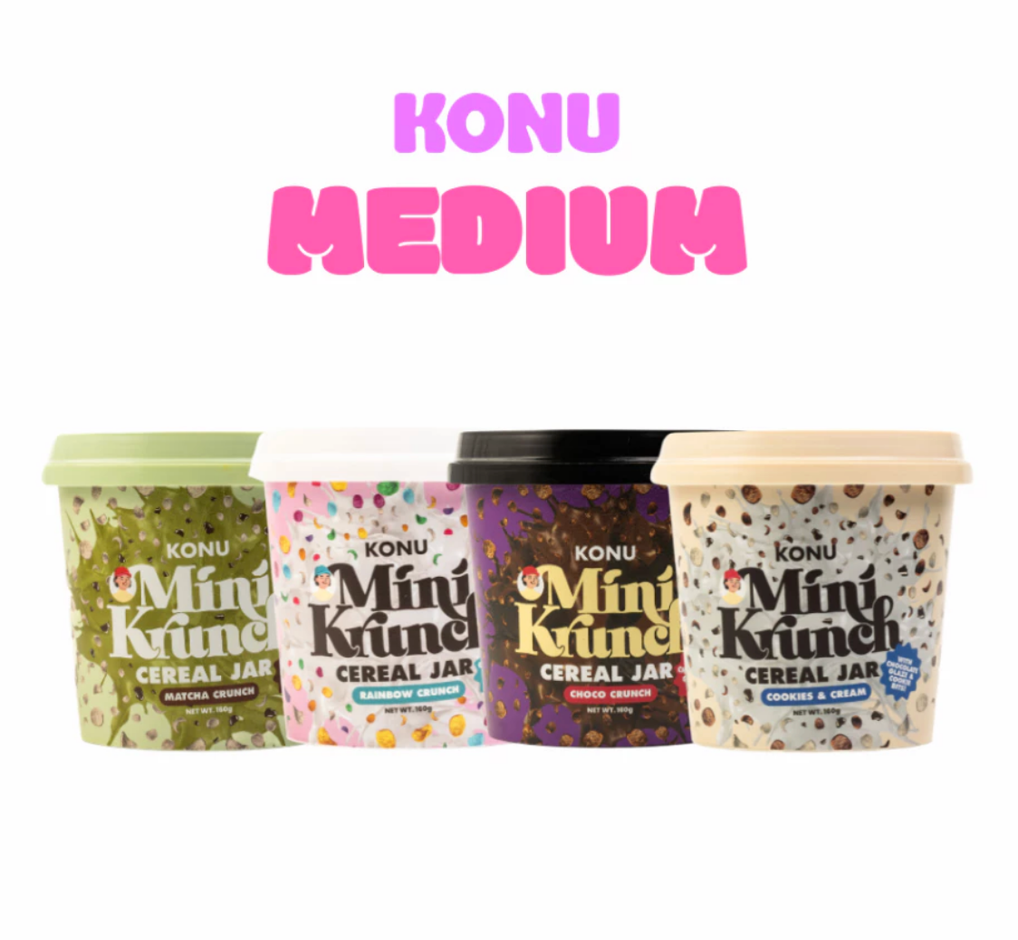 Indulge in the ultimate snacking experience with KONU Mini Krunch Cereal Jar in Extra Big Size! It offers a delectable range of flavors including Chocolate, Matcha, Rainbow, Cookies and Cream, Ube/ Taro, Strawberry, and Biscoff that are sure to tantalize your taste buds.
